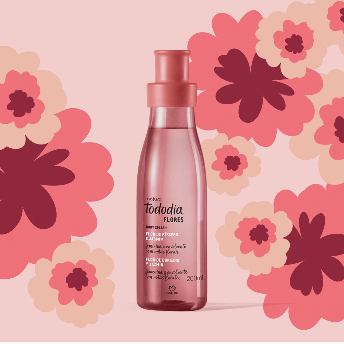 • envase ilustrado con las flores que inspiran la fragancia.